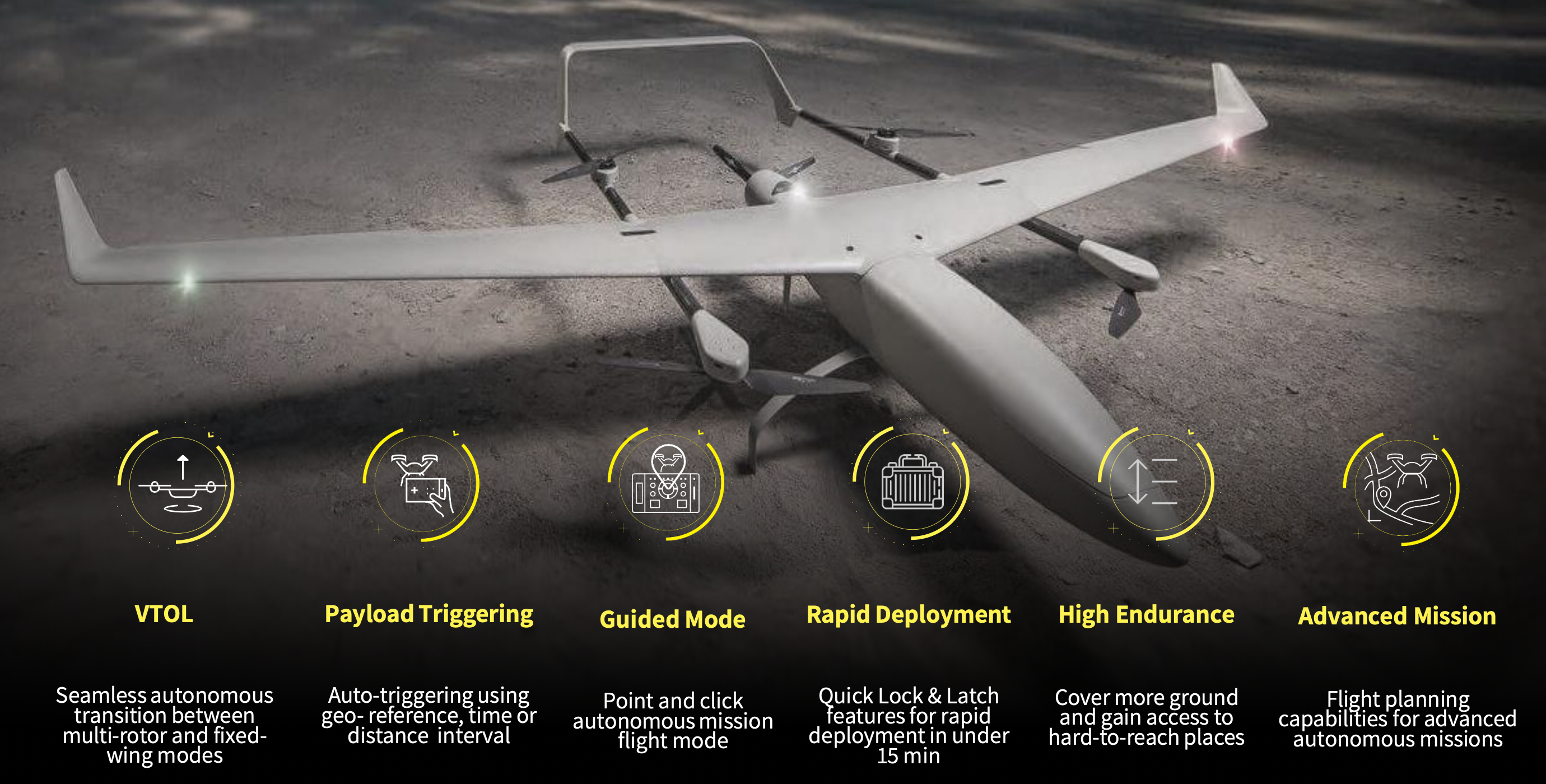 The CONOPS of the platforms is based on Intelligence, Surveillance and Reconnaissance operations while harnessing highly durable VTOL technology with a reliable, long endurance fixed wing propulsion, covering great distances in a single flight.